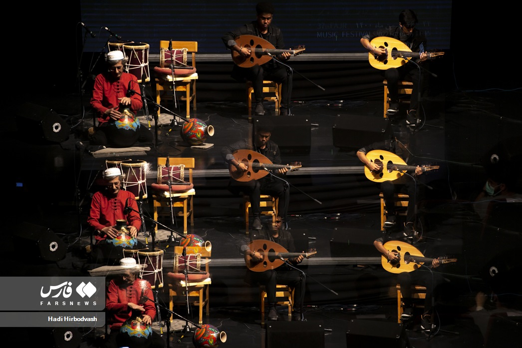 Following the program, at 9:30 PM, the Hormozgan Barbat Ensemble went on stage and performed non-verbal and happy pieces of music, such as “پامشPerformed for local festivals. The rhythmic piece “Jahaz” based on the joy of southern fishermen was also performed last night by Barbat Hormozgan.