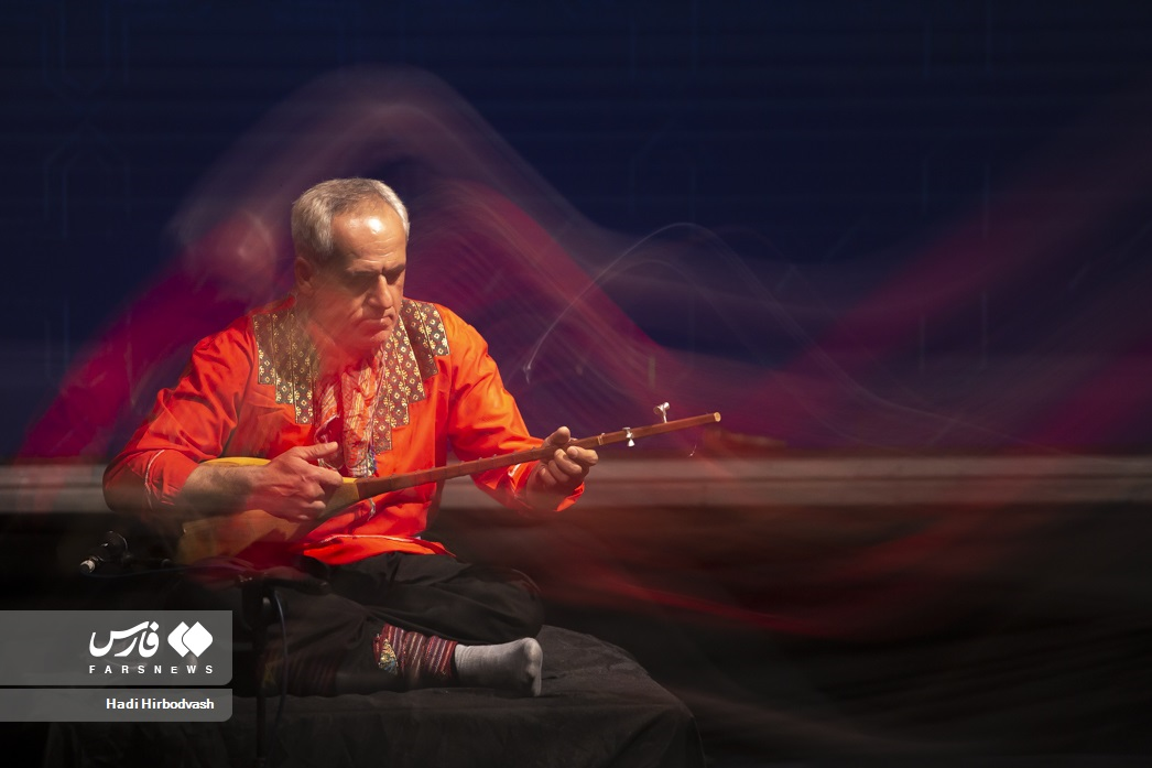 Mahmoud Sadeghi’s solo performance was the next part of Arasbaran performances. The artist entered the stage in local costume and performed the folk music of North Khorasan, including the famous work “Navai”, for the audience in the hall.