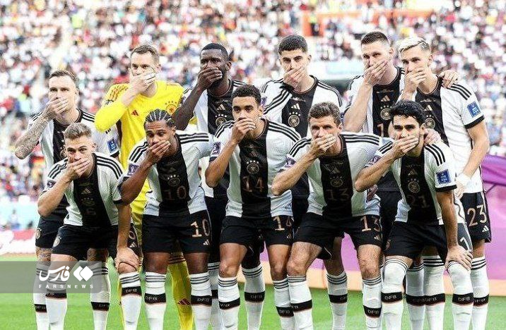 * The German players took a team photo before the start of the game by putting their hands in front of their mouths in protest against the rules of the tournament hosts.