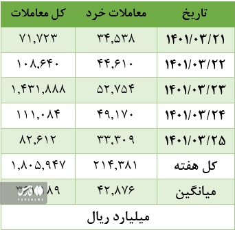But the value of retail transactions grew last week. This week, the average value of small transactions on the stock exchange was 4,287 billion tomans, which is an increase of 7% compared to the figure of 4,06 billion last week.