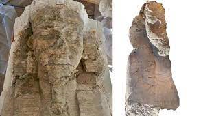 According to the Egyptian Ministry of Tourism and Antiquities, archaeologists found the two giant statues during the reconstruction of the tomb of King Amenhotep III in ancient Egypt.